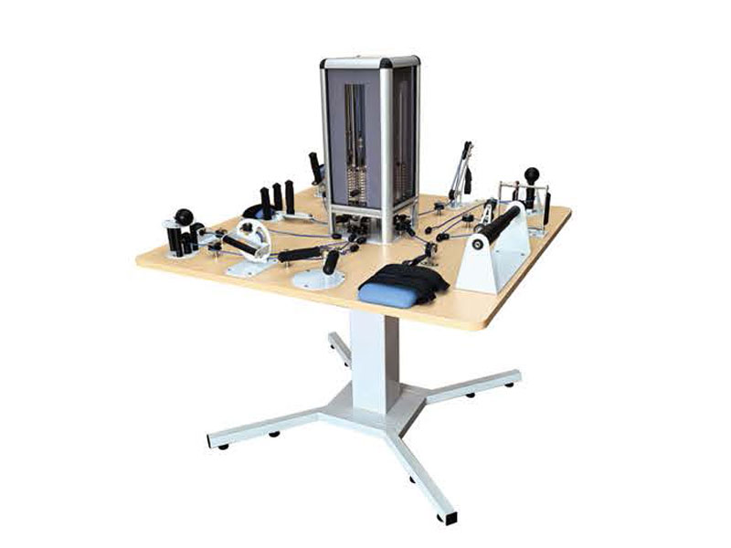 1、平台基本配置:手功能综合训练桌由多层板制作而成,训练桌包含一个配重总成(4列配重,每列11个配重块可任意调节负重)以及12个固定手功能训练模块。